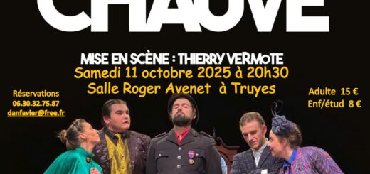Théâtre  » La Cantatrice Chauve » – 3P2A – Samedi 11 octobre – 20h30 Evenements / Vivre à Truyes 30 Sep, 2025 « La Cantatrice Chauve »… jouée par des vrais passionné(e)s de théâtre ! Notre association culturelle 3P2A organise une soirée théâtrale avec la pièce “La Cantatrice Chauve’’, interprétée par “La Compagnie à la Fraiche’’... Suivez-nous!