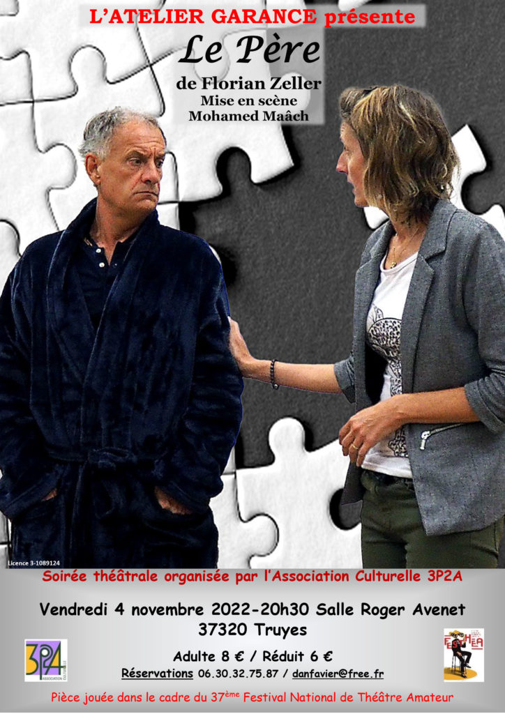 Pour ce “37ème Festival National de Théâtre Amateur, nous aurons le plaisir d’accueillir la Compagnie « L’Atelier Garance » qui nous présentera “Le Père“ de Florian Zeller mis en scène par Mohamed Maâch.